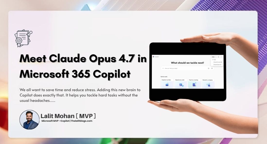 Microsoft is giving you more choices for your daily work. Anthropic’s latest AI model, Claude Opus 4.7, is now available inside Microsoft 365 Copilot.